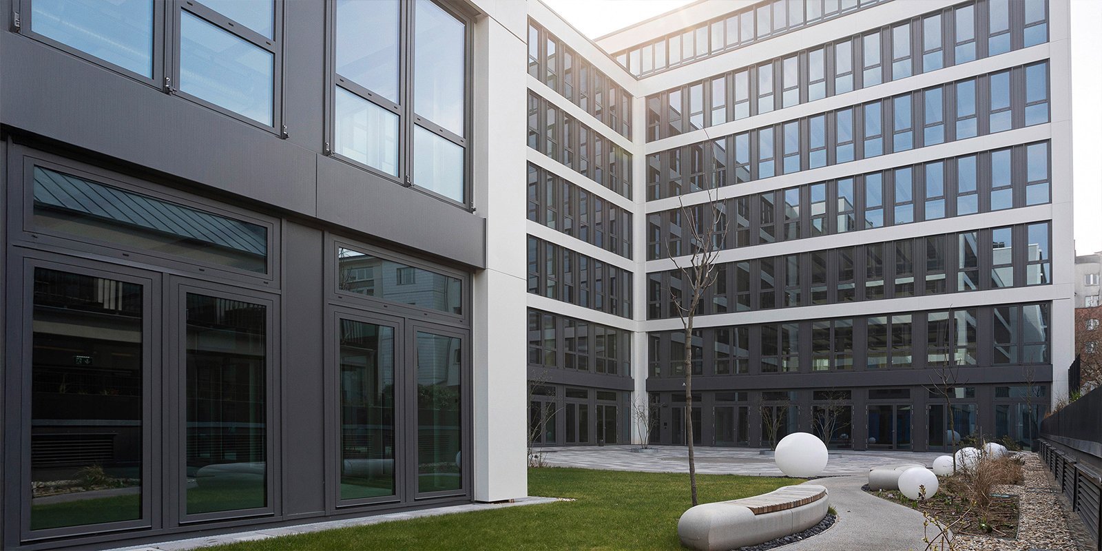 Insgesamt 25 VARIO Geräte mit einem Volumenstrom von 600 bis 3.500 m³/h versorgen die Büroeinheiten individuell mit Frischluft. Geregelt wird die Luftmenge über CO₂-Sensoren – auch die Kühlfunktion lässt sich optional zuschalten. „So sparen wir Energie und reduzieren die Betriebskosten pro Einheit deutlich“, erklärt Dipl.-Ing. Selim Cananoglu vom Planungsbüro TENSOR. Auch in puncto Gesundheit überzeugt die Anlage: Die VALLOX Lüftungsgeräte reduzieren Schadstoffe und CO2 in der Raumluft, während leistungsstarke Filter Feinstaub und Pollen draußen halten. Das trägt zur besseren Konzentration und Leistungsfähigkeit der Mitarbeitenden bei.